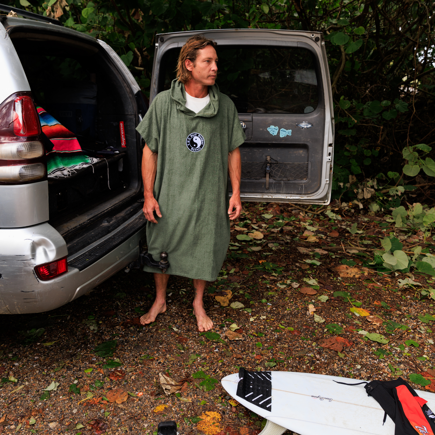 Our heavy weight 100% cotton poncho towels are your pre and post surf session essential.