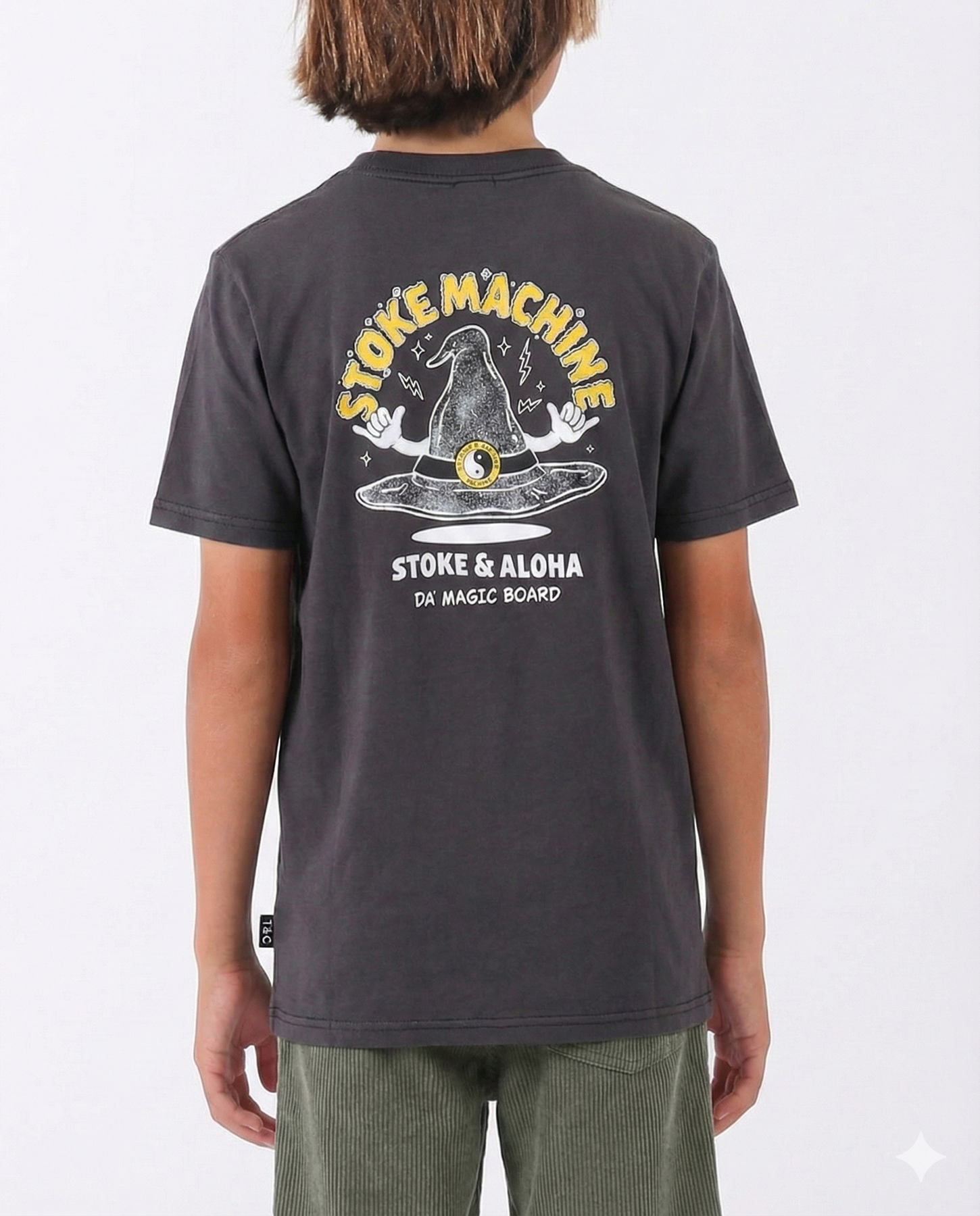 The Stoke Machine Tee features a playful, hand drawn graphic inspired by our cult-favourite twin fin, channeling pure fun, flow, and foam. Cut from organic 180 GSM cotton, it’s designed to stoke you out both in and out of the water.