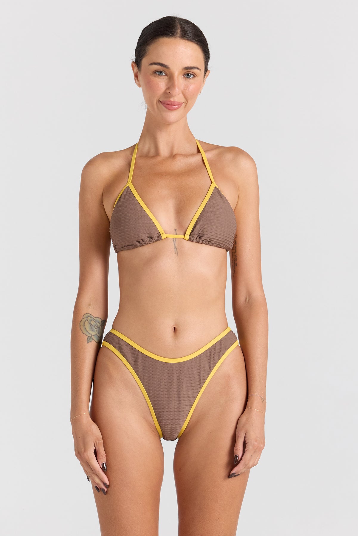 The String Tie Top is a timeless bikini essential, brought to life in a retro colour combination exclusive to our Town & Country Surf collaboration. Designed with classic triangle cups and adjustable string ties, this easy-wear style allows for a personalised fit while offering light support with removable padding. Finished with a nostalgic surf-inspired palette, it captures the carefree spirit of vintage beach days with a modern, feminine edge.