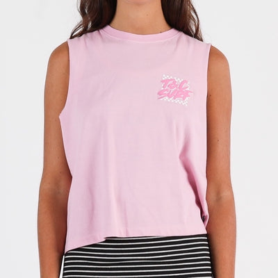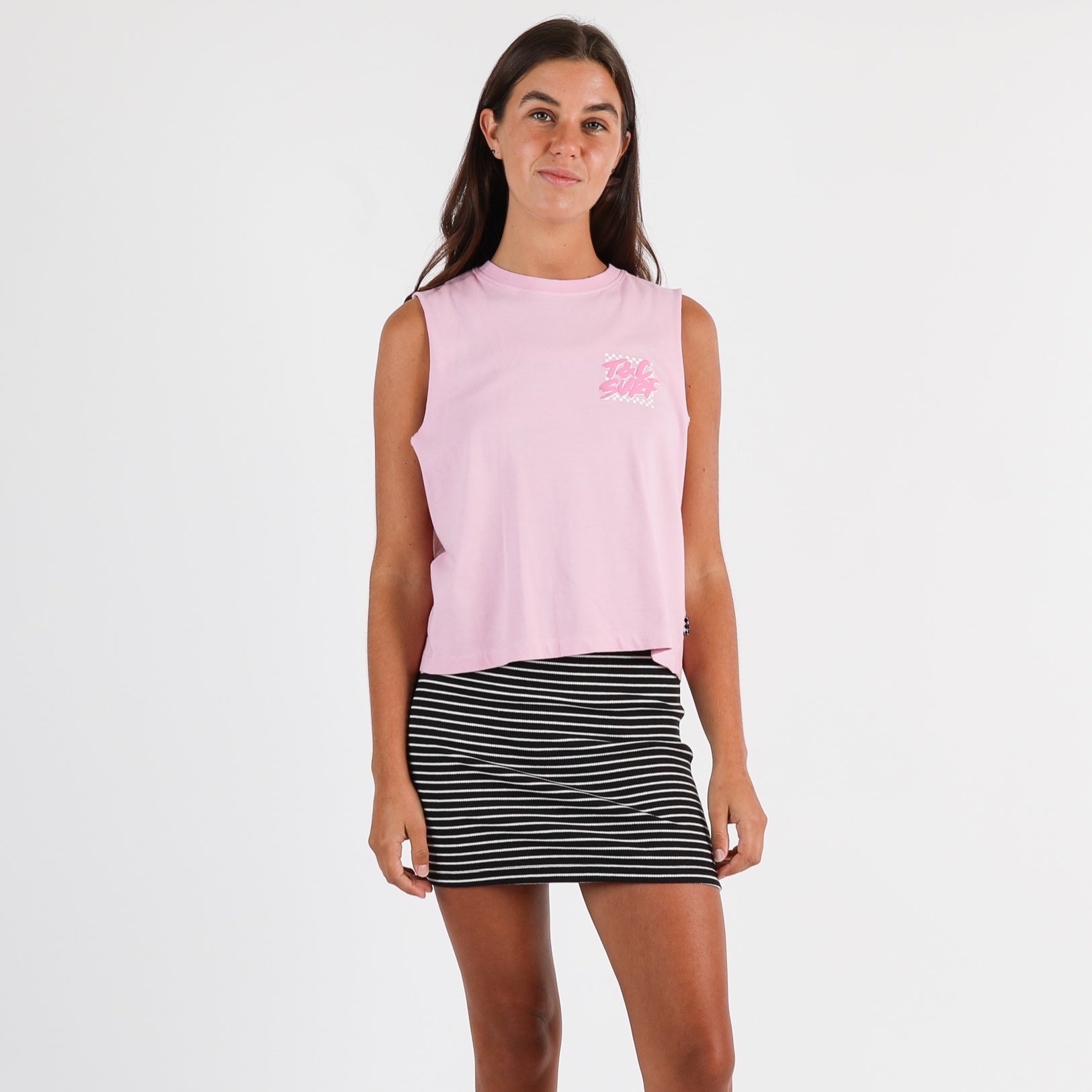 A 90s inspired print, revamped for summer in a washed pink colour. Full of Stoke and Good Vibes.